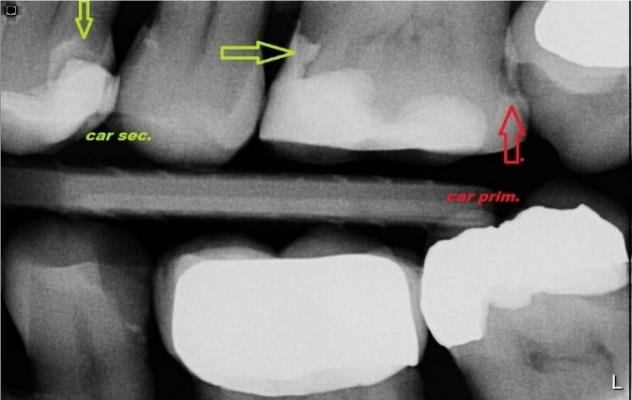 Der neue Patient wird zunächst zur Erstuntersuchung bestellt. Während des ersten Besuchs untersuchen wir den Zustand Ihrer Mundhöhle, Ihrer Zähne und Ihres Parodontiums. Röntgenaufnahmen werden während der Untersuchung gemacht. Das häufigste pathologische Phänomen in der Zahnchirurgie ist Karies. Eine frühzeitige Diagnose ist entscheidend für die Verbreitung von Karies und die anschließende Rehabilitation. Die Detektion von demineralisiertem Zahnschmelz in ungefähren Zwischenräumen ist nur mit dem Röntgenbild zu Beginn des kariösen Prozesses möglich. Auch sekundäre Abweichungen sind meist nicht erkennbar. Der Zahnverfall erscheint auf dem diagnostischen Bild nur aufgrund der Demineralisierung des Zahngewebes als dunkler Schatten.